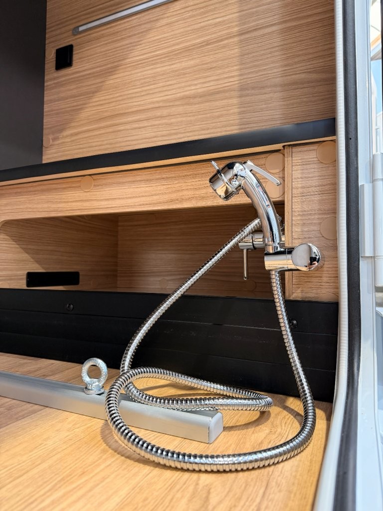 - Twinbedden achteraan + ruim hefbed boven woongedeelte