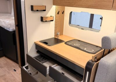 Met de MOOVEO INT 74 EBF geniet je van ultiem reiscomfort dankzij de krachtige 140 PK automaat en het ruime interieur. Je beschikt over 4 zit- en 4 slaapplaatsen met twin bedden achteraan en een praktisch hefbed in de cabine. Deze luxueuze motorhome combineert een doordachte indeling met hoogwaardige afwerking, waardoor je in alle seizoenen zorgeloos op pad kunt met maximaal comfort en gebruiksgemak.